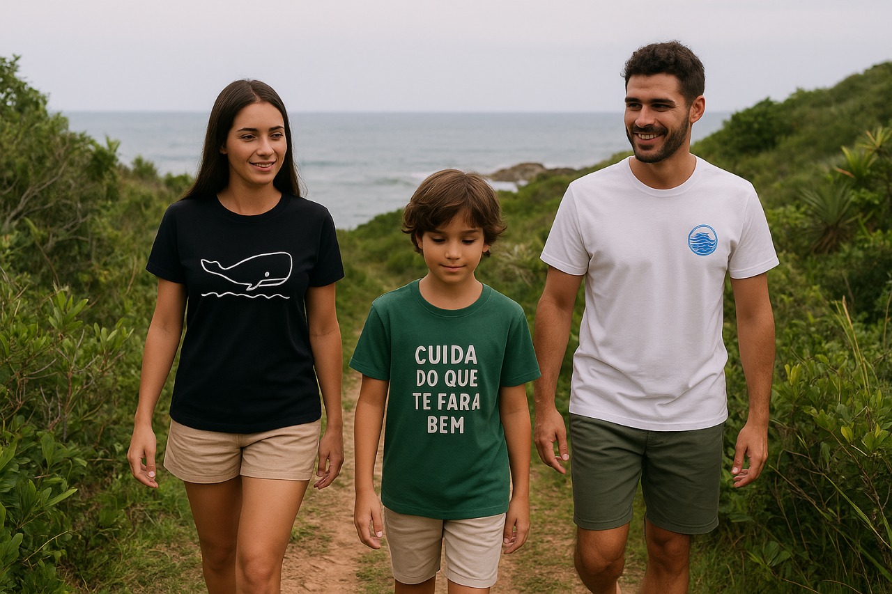 A Enseada Azul cria, vende e entrega camisetas personalizadas da sua causa e 100% do lucro é seu.